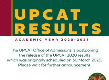 (Eagle News) – The University of the Philippines Office of Admissions (UPCAT – U.P. System) has announced that it is postponing the release of the UP College Admissions Test (UPCAT) 2020 results, originally scheduled today, Monday, March 30. In an announcement posted at the UP website on Saturday, March 28, the U.P. System said that it considered the situation of UPCAT applicants, who “will have different levels of access to online results in light […]