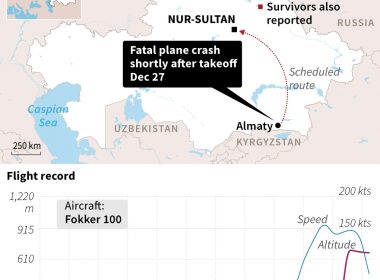 ALMATY, Kazakhstan (AFP) — At least 14 people died Friday when a passenger plane carrying 100 people crashed into a house shortly after takeoff from Kazakhstan’s largest city, authorities said. The Bek Air plane “fell off the radar” minutes after it took off from Almaty airport at 7.05 am (01:05 GMT) on its way to the capital, Nur-Sultan, the airport authority said in a statement. “There are 14 dead at the (crash) site,” the city […]