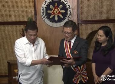 (Eagle News) — President Rodrigo Duterte conferred the Order of Sikatuna to the outgoing Vietnamese ambassador, who visited the chief executive in the Palace on Wednesday, Dec. 11, the Presidential Communications Operations Office said on Thursday, Dec. 12. The award given to Ly Quoc Tuan was with the rank of datu (Grand Cross) gold distinction, the PCOO said. The award was “for having been an exceptionally worthy and competent representative of his government to the […]