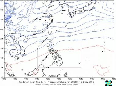 (Eagle News)–Rains are expected in parts of the country today, Dec. 10. The Philippine Atmospheric Geophysical and Astronomical Services Administration said Bicol Region, Quezon, and Samar provinces will have cloudy skies with scattered rainshowers and thunderstorms due to the tail-end of a cold front affecting Bicol. Flash floods or rain induced landslides during severe thunderstorms are possible. Cagayan Valley, Cordillera Administrative Region, Ilocos Region and Aurora province will have cloudy skies with light rains due […]