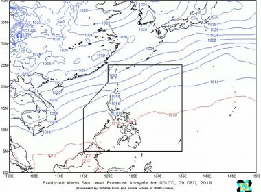 (Eagle News)–Rains are expected in parts of the country today, Dec. 9. The Philippine Atmospheric Geophysical and Astronomical Services Administration said Bicol Region and Eastern Visayas will have cloudy skies with scattered rainshowers and thunderstorms as the tail-end of a cold front affects Bicol Region. Cagayan Valley, Cordillera Administrative Region and Ilocos Provinces will have cloudy skies with light rains as the northeast monsoon affects the rest of Luzon. Mindanao, Palawan and the rest of […]