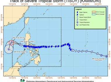 (Eagle News)–“Tisoy” no longer has any effect on the country, the Philippine Atmospheric Geophysical and Astronomical Services Administration said. According to PAGASA, the severe tropical storm is also expected to exit the Philippine Area of Responsibility between tonight and tomorrow morning. PAGASA said the eye of “Tisoy” was estimated 380 kilometers west of Subic, Zambales, packing maximum sustained winds of up to 95 kph and gustiness of up to 115 kph. “Tisoy” continues to move […]