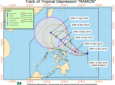 (Eagle News) — A Tropical Cyclone Wind Signal No. 1 has been hoisted over Eastern Samar and the eastern portion of Northern Samar as Tropical Depression “Ramon” moved westward. In its recent advisory, the Philippine Atmospheric Geophysical and Astronomical Services Administration said as of 4 p.m., the center of “Ramon” was estimated 670 kilometers east of Borongan City, Eastern Samar, packing maximum sustained winds of up to 55 kilometers per hour near the center and […]