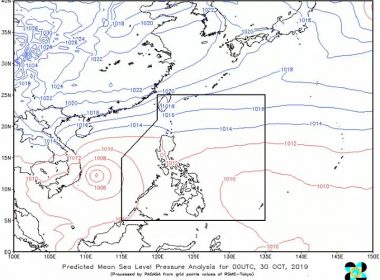 (Eagle News)–The Philippine Atmospheric Geophysical and Astronomical Services Administration is monitoring a low pressure area east of Davao. PAGASA said the LPA is located 460 kilometers east of the city. It said the easterlies are also affecting the eastern section of Luzon, while the northeast monsoon is affecting extreme Northern Luzon. Visayas, Northern Mindanao, Davao Region, Caraga will have cloudy skies with scattered rainshowers and thunderstorms due to the LPA, while Batanes will have partly […]
