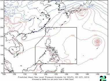 (Eagle News)–Parts of the country, including Metro Manila, will have cloudy skies and isolated rainshowers today, Tuesday, Oct. 22. The Philippine Atmospheric Geophysical and Astronomical Services Administration said the partly cloudy to cloudy skies with isolated rainshowers are expected due to localized thunderstorms. Flash floods or landslides during severe thunderstorms are possible. Extreme Northern Luzon, PAGASA said, will have moderate to strong winds and moderate to rough waters. The rest of Luzon, Visayas and Mindanao, […]