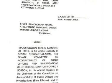 (Eagle News)–The three resource persons who were cited in contempt by a Senate panel probing the problems in the. Bureau of Corrections have sought the help of the Court of Appeals and filed a petition for a writ of habeas corpus. In filing the petition on Wednesday, Sept. 18, Ramoncito Roque, Fredric Anthony Santos and Ursicio Cenas said the blue ribbon committee violated their right to due process when it supposedly did not give them […]