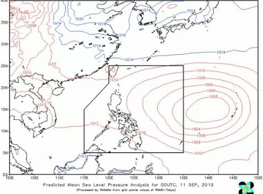 (Eagle News)–The Philippine Atmospheric Geophysical and Astronomical Services Administration is monitoring a low pressure area outside the Philippine Area of Responsibility that has developed into a tropical depression. PAGASA said as of 2 a.m., the center of the tropical depression was estimated at 1355 kilometers east of Visayas, and is expected to enter PAR today. PAGASA said Eastern Visayas, Bicol Region, and the provinces of Quezon and Aurora will have cloudy skies with scattered rainshowers […]