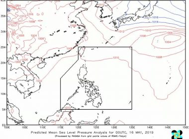 (Eagle News)–Cloudy skies are expected in the country today, May 16, the Philippine Atmospheric Geophysical and Astronomical Services Administration said. PAGASA said partly cloudy to cloudy skies with isolated rainshowers are expected in Metro Manila and the rest of the country due to localized thunderstorms. Flash floods or landslides during severe thunderstorms are possible. According to the weather bureau, light to moderate winds and slight to moderate coastal waters are expected in Luzon, Visayas and […]
