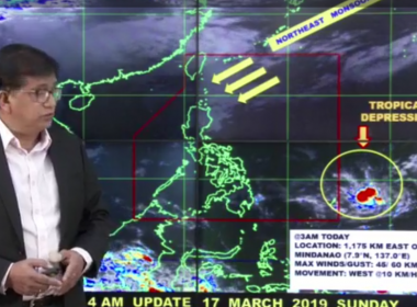 (Eagle News)–The tropical depression monitored near Mindanao is expected to enter the Philippine Area of Responsibility today, March 17. The Philippine Atmospheric Geophysical and Astronomical Services Administration said as of 3 a.m., the center of the weather disturbance was 1,175 kilometers east of southern Philippines. It is packing maximum sustained winds of 45 km/h near the center and gustiness up to 60 km/h, as it moved west at 10 km/h. Once it enters PAR, PAGASA said […]
