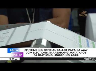 (Eagle News) — Inaasahang sa ikatlong linggo ng Abril matatapos ang printing ng official ballots para sa 2019 midterm elections. Sa huling linggo naman ng Abril ay nakatakda nang ipamahagi ang mga ito sa iba’t-ibang lugar sa bansa. Ayon kay Commission on Elections (COMELEC) Spokesperson James Jimenez, ang mga official ballot ay ipadadala sa pamamagitan ng courier service na kinontrata ng Comelec. Kasama rin sa ide-deliver ang mga precinct count optical scanner o PCOS machines. […]