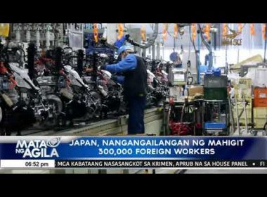 (Eagle News) — Mahigit tatlong daang libong manggagawa ang kailangan ngayon ng Japan para sa 14 na industriya. Sa Abril, may ilulunsad na bagong employment track kung saan may pagkakataon ang manggagawa na madala ang pamilya at magkaroon ng “immigrant status.” Nakipagpulong na ang mga opisyal ng Japan sa Philippine Overseas Employment Administration (POEA) para ilunsad ang bagong employment track na tatawaging “specified skilled worker visa.” May dalawang kategorya sa ilalim ng bagong programa depende […]