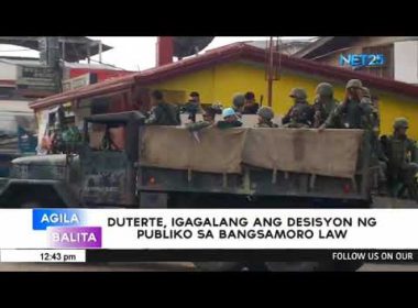 (Eagle News) — Tiniyak naman ng Malacañang na igagalang ni Pangulong Rodrigo Duterte ang magiging desisyon ng taong bayan sa Bangsamoro Organic Law (BOL). Pahayag ito ng Palasyo isang linggo bago ang plebisito sa ilang bahagi ng Mindanao kung raratipikahan o hindi ang BOL. Ayon kay Presidential Spokesperson Salvador Panelo, tiyak na susunod ang Pangulo anuman ang nais ng publiko na sakop ng naturang batas. Kung sa tingin aniya ng Pangulo na kailangang ikampanya niya […]