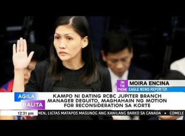 Ni Moira Encina Eagle News Service (Eagle News) — Hinatulang guilty ng Makati RTC Branch 149 sa kasong money laundering si dating Rizal Commercial Banking Corporation (RCBC) Jupiter Branch, Makati City Manager Maia Santos-Deguito. Ito ay may kinalaman sa 81 million dollars na nakaw na salapi mula sa bangladesh bank na idinaan sa RCBC Jupiter branch partikular ang over the counter withdrawal ng 14.3 million dollars na bahagi ng $81 million na laundered fund. Sa […]