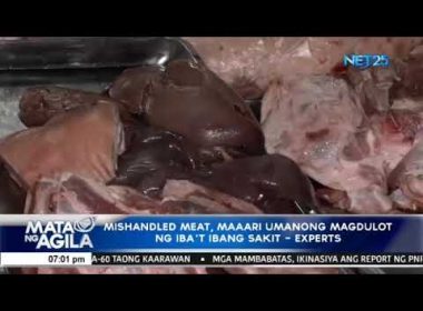 (Eagle News) — Patuloy na nagpapaalala ng mga eksperto sa publiko sa pagbili ng malinis at ligtas karne sa mga pamilihan. Ayon kay Dr. Ana Marie Cabel, City Veterinarian ng Quezon City, laganap pa rin sa pamilihan ang mga tinaguriang mishandled meat. Ito ay nangangahulungang hindi tama ang pag-iimbak at pagsalansan sa mga ito. Paliwanag ni Cabel, ang frozen meat ay dapat na nasa chiller lang, kapag daw ito ay inilabas sa chiller, malaki ang […]