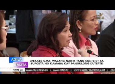Speaker GMA walang nakikitang conflict sa suporta ng kamara kay Pangulong Duterte