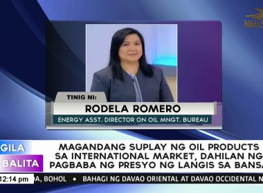 (Eagle News) — The series of reduction in the prices of petroleum products is due to the ample supply of petroleum in the international market, according to the Department of Energy (DOE). In an interview with Eagle News Service, Energy Assistant Director on Oil and Management Bureau Rodela Romero explained that the crude oil pricing in the world market affects oil prices in the country, particularly because we are highly dependent on imported fuel. Romero […]