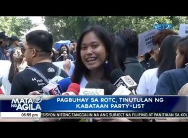 (Eagle News) — Hindi pa man ganap na ipinag-uutos ni Pangulong Rordigo Duterte ang tuluyang pagbuhay sa Reserved Officers Training Corps o ROTC sa kolehiyo at Senior High School. Mariing na itong tinututulan ng grupong Kabataan Partylist. Natatakot aniya sila na kung pagtitibayin ng Kongreso ang hiling ng Pangulo sa pagbuhay ng ROTC sa mga paaralan. Ito naman ang maging daan upang hadlangan ang ginagawang malayang paghahayag ng mga kabataan. Kahit pa aniya maglalatag ng […]