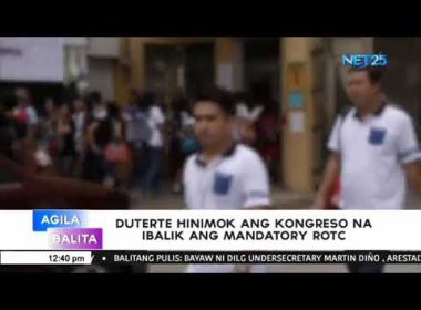 (Eagle News) — President Rodrigo Duterte on Thursday, Nov. 22, reiterated his call for the Reserve Officers’ Training Corps program to be mandatory for Grades 11 and 12 students in the country. Duterte made the pitch during the 15th Army Reserve Command Founding Anniversary at the General Mariano Diego de Dios camp in Tanza, Cavite, noting the “lack of patriotism” of the “next Filipino.” “May iba papasok for love of country..but ilan lang?Ilan lang papasok ng ganitong […]
