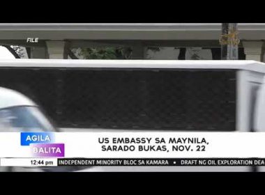 (Eagle News) — The United States Embassy in Manila will be closed on Thursday, November 22 due to the observance of Thanksgiving which is a national holiday in the US. In an advisory, the US Embassy also said that its affiliate offices will be also closed tomorrow. Regular services at the US embassy and its affiliate offices will resume on Friday, November 23. https://youtu.be/3cmyxK0IqLs