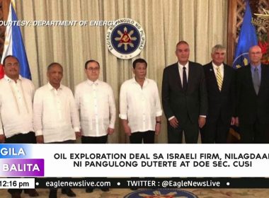 (Eagle News) — President Rodrigo Duterte on Wednesday, October 17 signed the Petroleum Service Contract No. 76 with Israel’s Ratio Petroleum Ltd., covering the East Palawan Area. The petroleum service contract for the Area 4, the fifth round of the Philippine Energy Contracting Round (PECR5), was signed at the Heroes Hall in Malacañang, Palace. According to the Department of Energy, the service contract deal will allow the Israeli firm to explore the Area 4, covering […]