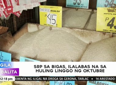 (Eagle News) — Ipapalabas na ng Department of Agriculture (DA) sa huling linggo ng Oktubre ang suggested retail price (SRP) para sa mga bigas. Ayon kay Secretary Manny Piñol, wala silang nakikitang dahilan para tumaas pa ang presyo ng bigas dahil bumabagsak na ang presyo ng mga palay. Apat na klase ng bigas aniya ang lalagyan nila ng SRP at ito ay ang mga regular-milled rice, well-milled, premium at special rice. Ngunit hindi aniya kasama […]