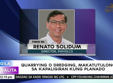 (Eagle News) — Makatutulong sa kapaligiran ang quarrying o dredging kung ito ay planado. Ayon kay Philippine Institute of Volcanology and Seismology (PHIVOLCS) Director Renato Solidum, nakasasama lamang sa kapaligiran ang quarrying kung ito ay walang kontrol. Paliwanag ni Solidum, sa halip na tuluy-tuloy ang pagdaloy ng tubig papuntang dagat, napeperwisyo ang river banks dahil sa uncontrolled quarrying at nagiging sanhi ng paglusot ng baha sa ilang mga lugar. “Yung isang quarrying ay pag-ukab ng […]