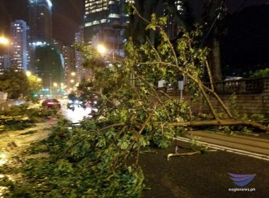 (Eagle News) — These pictures provided by EBC correspondents show fallen trees on Hong Kong roads as Typhoon “Mangkhut” battered the territory. This was after “Mangkhut,” locally named “Ompong,” unleashed its fury in the Philippines and left at least 50 people dead. “Ompong” made landfall in northern Luzon early Saturday, and left the Philippine Area of Responsibility on Saturday night.