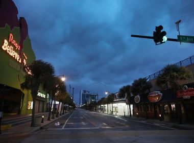 MYRTLE BEACH, South Carolina (AFP) — Heavy winds batter an almost empty Myrtle Beach in South Carolina as Hurricane Florence makes its presence known. The still dry sand flies around, making swirls in the beach.