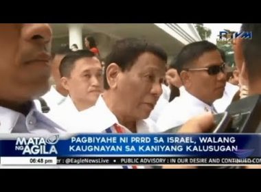 Pagbiyahe ni Pangulong Duterte sa Israel, walang kaugnayan sa kanyang kalusugan