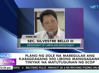 (Eagle News) — The Employer’s Confederation of the Philippines (ECOP) vowed to help the Department of Labor and Employment in its campaign to end contractualization in the country. In fact, Labor Secretary Silvestre Bello III said “we are now in possession of a proposed memorandum understanding submitted by ECOP.” “Pagka tatanggapin ang MOU na ito ay maaaring magkaroon ng paglalagda and this will result in the regularization of 300,000 contractual workers,” Bello said in a phone […]