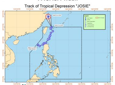 (Eagle News) – Tropical depression “Josie” is now outside the Philippine Area of Responsibility, but the country will continue to experience scattered to widespread monsoon rains. As of 7 a.m. on Monday, July 23, “Josie” was estimated to be 585 kilometers north northeast of Basco, Batanes which is already outside the country. With maximum sustained winds of up to 55 kilometers per hour near the center and gustiness of up to 65 kph, it […]