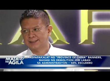 (Eagle News) — Naniniwala si Senador Francis Escudero na bahagi ng demolition job laban sa Duterte Administration ang ginawang pagpapakalat ng mga “Province Of China” banner sa Metro Manila. Sabi ni Escudero, hindi ito gagawin ng administrasyon dahil maraming pinoy ang galit sa China, lalo na sa isyu ng pinag-aagawang teritoryo sa West Philippine Sea posible aniyang pakana ito ng kalaban ng administrasyon o bahagi ng kanilang propaganda para lalong siraan ang pamahalalan pero bahala […]