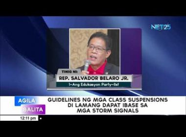 (Eagle News) — Kailangang magkaroon ng mas komprehensibo, mas malawak at malinaw na saklaw ang pagsususpinde ng klase. Ito ang nilalaman ng House Bill 6072 na isinusulong ni “Ang Edukasyon” Partylist Representative Salvador Belaro. Sa panayam ng Radyo Agila, tinukoy ni Belaro na masyadong limitado ang saklaw ng Executive Order No. 66 kung saan mga storm warning signals lamang ang nagiging basehan ng suspension of classes. Ayon kay Belaro, hindi lamang mga bagyo ang maaaring […]