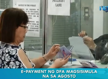 (Eagle News) — Sisimulan na ng Department of Foreign Affairs (DFA) sa Agosto ang kanilang e-Payment System. Ayon sa DFA, babayaran na ng advance kapag nagpa-appointment online ang full processing fee na 1,200 pesos para sa express processing at 950 pesos sa regular processing. May dagdag na 50 pesos naman para sa processing fee. Ang sistema ay maaari pa lamang magamit ng mga nagpapa-book ng kanilang pasaporte sa Metro Manila.