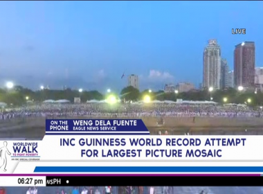 (Eagle News) — The Iglesia Ni Cristo (Church Of Christ) bagged its second Guinness world record for the day, with the declaration that it had achieved the “largest picture formed by people” or the largest human mosaic on Sunday, May 6. Guinness adjudicator Lucia Sinigagliesi announced that the Iglesia Ni Cristo’s attempt that formed the largest picture was formed by 9,000 INC members The image was the Church’s green, white and red flag with […]