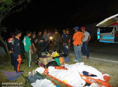 Ni Freddie Rulloda Eagle News Service BAGUIO CITY, Benguet (Eagle News) – Patay ang apat na katao habang sugatan naman ang walo pang indibidwal matapos mahulog sa malalim na bangin ang isang van sa Sitio Guesset, boundary ng Tinongdan, Itogon at Bokod, Benguet Huwebes ng gabi, Abril 19. Dead on the spot sina Gemalyn Lorenzo, 28; Julie Valencia, 52; at Antonio Bulay, 65. Dead-on-arrival naman sa pagamutan ang isa pang biktima na kilalang si Alfredo […]