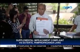 (Eagle News) — Magdalo Rep. Gary Alejano on Thursday filed a supplemental complaint to his original impeachment complaint against President Rodrigo Duterte, an act the chief presidential legal counsel described as mere “publicity and propaganda.” In an interview with reporters during the filing at the House of Representatives, Alejano said the supplemental complaint stems from Duterte’s foreign policy as a whole. The first impeachment complaint against Duterte was filed by Alejano on March 16 on five grounds: […]