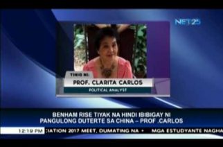 (Eagle News) — Mali ang report na mistulang pinahihintulutan ni Pangulong Rodrigo Duterte ang China na pasukin ang teritoryo ng bansa. Ito’y may kaugnayan sa namataang Chinese Survey Ship sa bahagi ng Benham Rise na umano’y alam ni Pangulong Duterte . Sa panayam ng Liwanagin Natin, sinabi ni Up Professor Clarita Carlos , posibleng may dahilan ang Pangulo at tiyak ring alam nito na mayaman sa natural resources ang Benham Rise kaya malabo niya itong […]