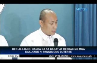 (Eagle News) — Handa na umano si Magdalo Rep. Gary Alejano na harapin ang mga batikos at resbak mula sa kampo ni Pangulong Rodrigo Duterte matapos niyang ihain ang impeachment case laban dito. Ayon kay Alejano, bago pa man niya ihain ang naturang complaint batid niyang magiging sentro siya ng kritisismo at banat ng mga taga-suporta ng Pangulo. Gayunman, naniniwala ang mambabatas na bahagi ng kanyang sinumpaang tungkulin sa mga Pilipino ang pagpuna sa mga […]