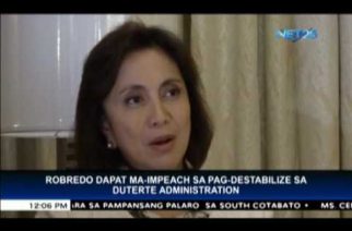 (Eagle News) — Vice President Leni Robredo may soon face an impeachment complaint. In an interview with CNN Philippines, Speaker Pantaleon Alvarez said he was studying filing the complaint against Robredo, who he said had betrayed the public trust. “Ipagpalagay natin na totoo ang pagkahalal (niya), sisiraan mo ang bayan sa international community ng walang pakundangan. Ano ang magiging epekto nun. Economically, may impact po yun. At saka siyempre ipinipinta nya yung bansa natin na di maganda sa […]