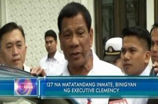(Eagle News) — Nagbigay ng executive clemency sa 127 na matatanda at sakiting preso si Pangulong Rodrigo Duterte. Ito’y batay na rin sa rekomendasyon ng Department of Justice (DOJ). Ang nasabing kautusan ay nilagdaan ng pangulo nito pang Pebrero, kasunod na rin ng nauna niyang pangako na pagpapalaya sa mga matatanda at maysakit na mga inmate. Sakop ng nasabing kautusan ang mga kulungan sa ilalim ng Bureau of Corrections, kabilang na ang New Bilibid Prison […]