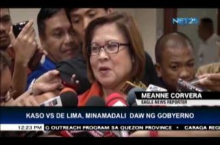 https://youtu.be/3T3shxDCnss (Eagle News) — Senator Leila De Lima accused the government of making extra effort to hasten the filing of cases against her, which she said was a violation of her right to due process. “Di ba dati ko nang sinabi sa inyo yung advance info ng DOJ (Department of Justice), na talagang pinabibilisan na nila? May mga ilang kaso na ipapadala nila sa Ombudsman, pero meron ding ipapadala sa regular trial court,” she […]