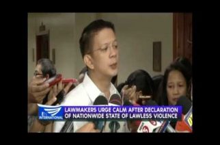 MANILA, Philippines (Eagle News) — Lawmakers sought to calm the public on President Rodrigo Duterte’s declaration of a state of lawlessness nationwide, following the deadly bombing in Davao City that killed 14 people and injured scores of others. Sen. Francis Escudero said there is nothing to fear because it has no effect on civil liberties or rights under the bill of rights. He said, it has no effect on the everyday lives of countrymen except […]