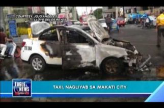 QUEZON City, Philippines (Eagle News) — A taxi with the plate number TYV 388 suddenly combusted on Vito Cruz St. Cor. Chino Roces Avenue in Makati City, around 7:40 AM. The fire was successfully extinguished by firemen. The driver and the owner of the taxi cab fled the scene so the cause of the fire is not known.