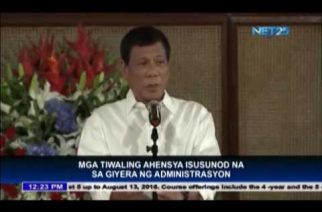 QUEZON City, Philippines – President Rodrigo Roa Duterte said in his speech during the mass oath-taking of new government appointees in Malacañang that the next targets in his war against corruption are the Land Transportation Franchising and Regulatory Board (LTFRB) and the Land Transportation Office (LTO). President Duterte said that he already received many complaints from businessmen regarding the widespread and uncontrollable corruption in the two government agencies, especially in their regional offices. (Eagle News […]