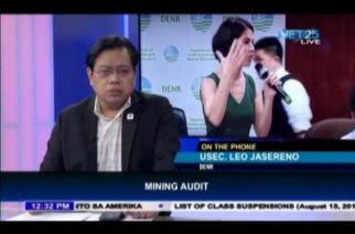 QUEZON City, Philippines (Eagle News) — In an exclusive interview with Agila Balita Alas Dose, Department of Environment and Natural Resources (DENR) Undersecretary Leo Jasereno talks about the DENR’s mining audit the deadline for which is August for metallic mines and September for non-metallic mines.