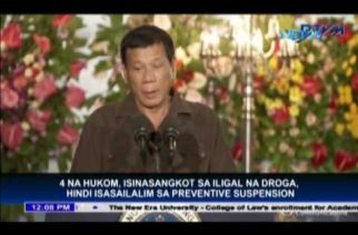 QUEZON City, Philippines (Eagle News) – In response to the letter sent by Chief Justice Ma. Lourdes Sereno regarding the seven judges allegedly involved in the illegal drug trade, President Rodrigo Duterte said that he may declare martial law if the Supreme Court will hinder his efforts against the eradication of the illegal drug trade. Sereno earlier stated that the seven judges should not surrender to the police if they do not have a warrant […]