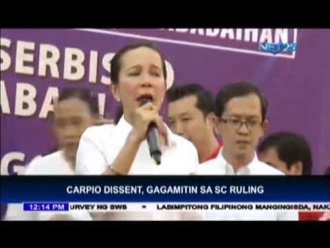 MANILA, Philippines – According to the various camps that are pleading for the disqualification of Senator Grace Poe, they will make use of the dissenting opinion of Senior Associate Justice Antonio Carpio for their their motion for reconsideration. (Eagle News Service Described by Jay Paul Carlos, Video Editing by Dexter Magno, Uploaded by MRFaith Bonalos)
