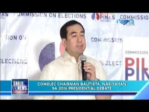 MANILA, Philippines – The Chairman of the Commission on Elections, Andres Bautista is very happy with the results of the presidential debates conducted in Cagayan De Oro City. Bautista added that the debate will help the voters form their own opinion regarding the presidential candidates and expressed admiration in the technology used. (Eagle News Service Described by Jay Paul Carlos, Video Editing by Jericho Morales, Uploaded by MRFaith Bonalos)