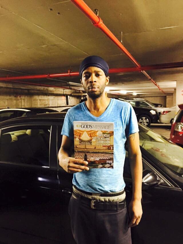 Brother Art Dacanay of the locale congregation of Forest Hills New York, NESB sharing Pasugo to his co-workers while at work during the Iglesia Ni Cristo’s Worldwide Pasugo Distribution. (Eagle News Service)